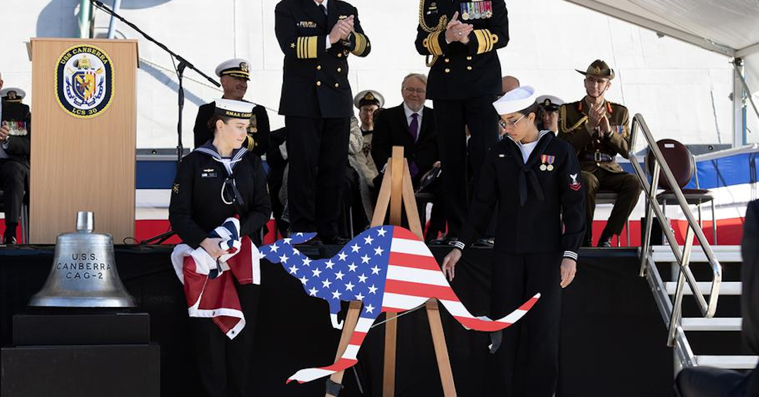 A new US warship has been ushered into service in Sydney. The ship is called the USS Canberra to honor the military union of the United States and Australia, and, if that’s still too subtle for you, it has a literal star-spangled kangaroo affixed to its side.
