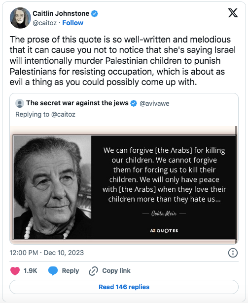 Israel supporters will defend any evil — literally any evil — as long as it is being perpetrated by their favorite regime. There are zero constraints of any kind, because Israel supporters are completely uninterested in morality. If they were, they wouldn’t be supporting one of the most immoral governments on this planet even after all it has done in the last two months.
