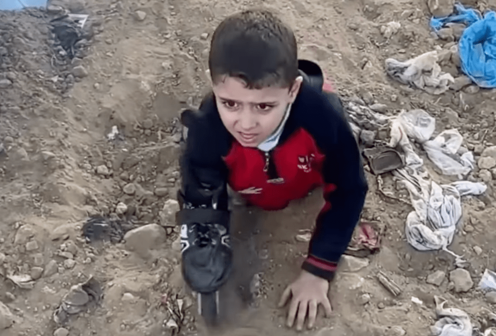 When we look at Mohammad Saeed crawling through the dirt on his leg stumps with the help of a roller skate, we are seeing our own civilization reflected back at us. A genocidal dystopia of complete moral bankruptcy. This is what we have become. This is what we have allowed our rulers to turn us into.