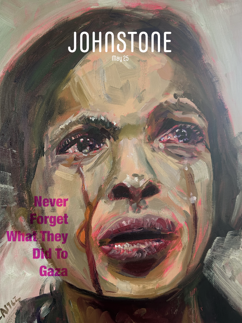 This month’s issue features a painting based on a photo from Palestinian journalist Moaz Abutaha, and it’s titled “Never Forget What They Did To Gaza.” Because we must never, ever let anyone forget.