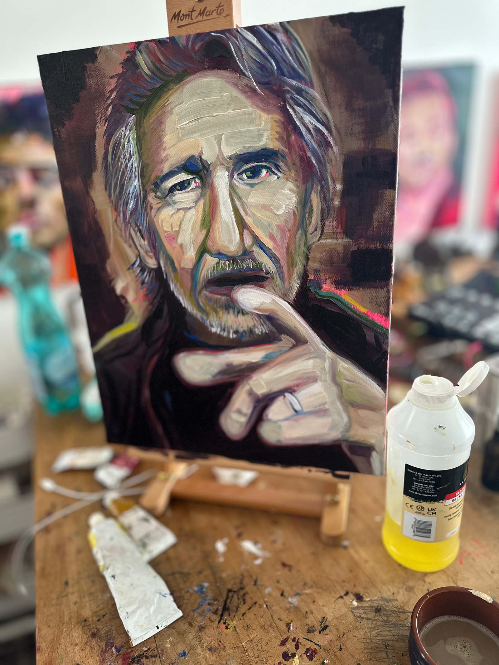 Painted Roger Waters in the middle of a furious tirade against the evils of the empire. Thinking of calling it “The Most Vindicated Man On Earth” or “You Shoulda Listened To Me, Thom”.